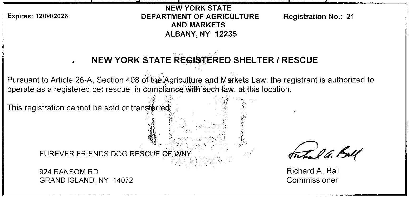 Applications can be emailed to fureverfriendswny@gmail.com, or sent via US Mail to: PO Box 420, North Tonawanda, NY 14120.
